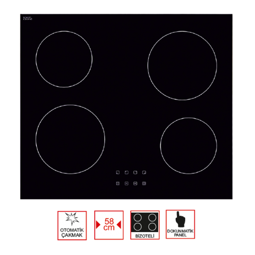 58 cm seramik ankastre ocak
