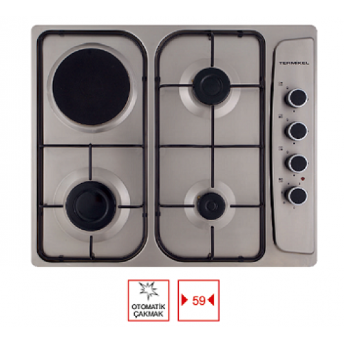 3 gözü gazlı, 1 gözü elektrikli, 59 cm inox set üstü ocak